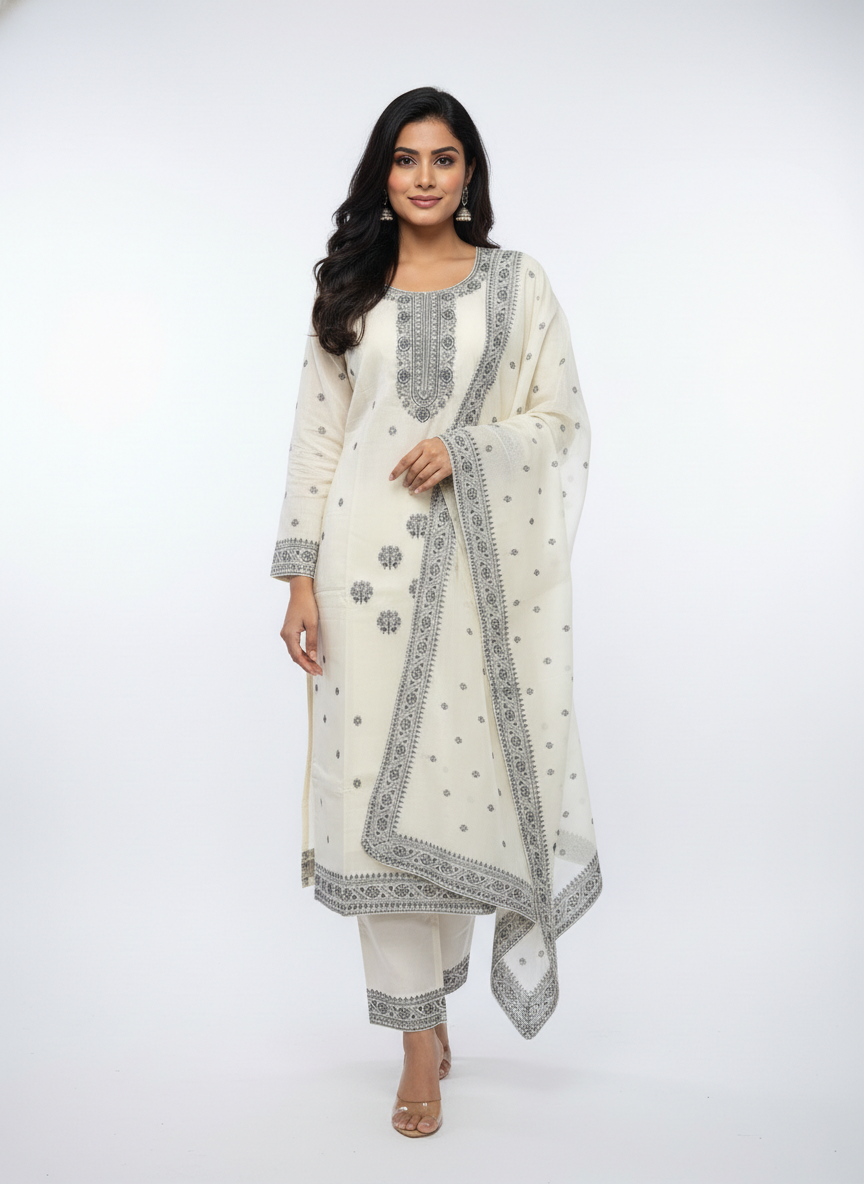 Be the first to review “Ivory White Printed Kurta Set with Dupatta”